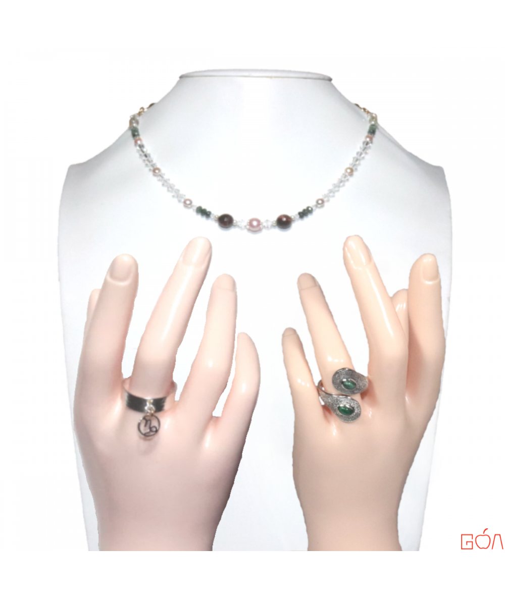 Plus de détails : 1 bague martelée avec 1 anneau ; 1 pendentif rond Zodiaque Capricorne (10 mm) ; {en Gold filled 14 carats :} 1 anneau rond (3.5 mm).