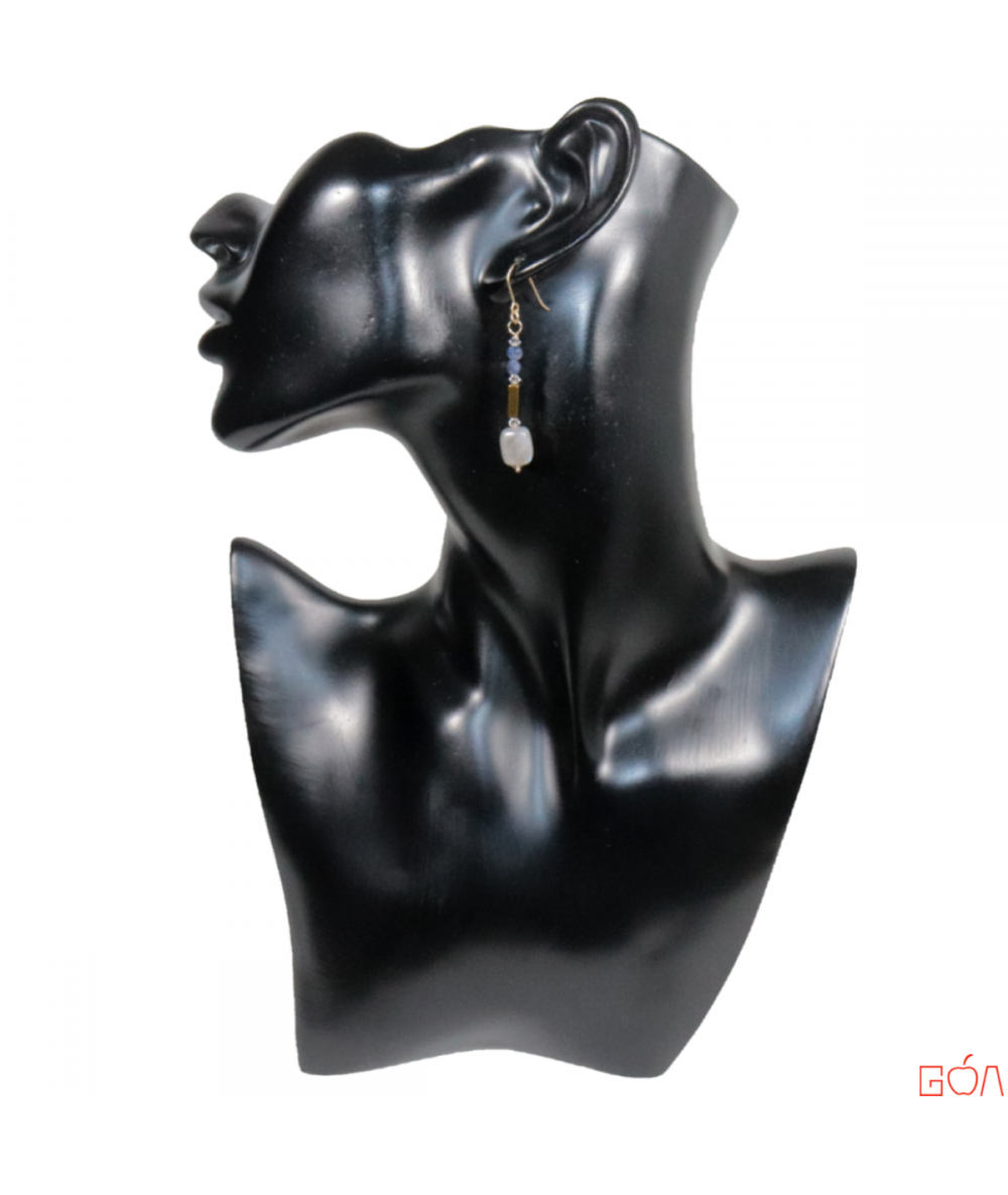 Plus de détails : 6 cristaux de Swarovski transparents (3 mm) ; 2 pendentifs perlés (50 mm) ; 2 coupelles fleurs (3 mm) ; 2 crochets d'oreilles guillochés (0.7*20 mm).