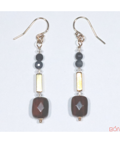Nom/Origine/Nombre/Forme/Couleur/Diamètre : Oeil de taureau ; Afrique du Sud ; 2 ; Rectangle ; Rouge-Brun ; 8*10 mm