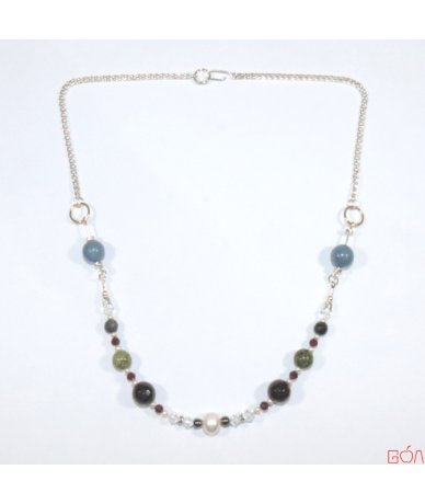 Plus de détails : 6 cristaux de Swarovski transparents (5 mm) ; 2 boules lisses (2,5 mm) ; 4 rondelles gravées (3.7*5.5 mm) ; 4 perles à écraser (2 de 2 mm et 2 de 1.10 mm) ; 1 fil de Nylon (0.5 mm) ; 2 embouts à écraser (8 mm) ; 2 embouts cloches (4 mm) ; 5 anneaux ronds (1 de 8 mm et 4 de 5 mm) ; 1 chaîne maille Gourmette 3 mm (11.5 cm*2) ; 1 fermoir crochet (16 mm) ; {en Gold filled 14 carats :} 2 anneaux ronds (10 mm).