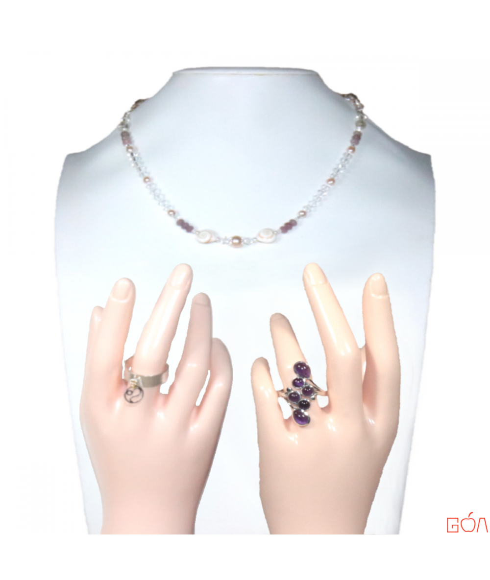 Origine/Nombre/Forme/Couleur/Grade : Brésil ; 6 ; Cabochons (2 gouttes et 6 ronds) ; Violet ; AA