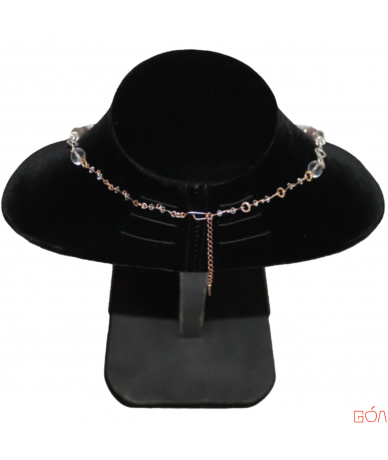 Plus de détails : 44 cristaux de Swarovski transparents : 24 de 5 mm et 20 de 3 mm ; 1 fil de Nylon (0.5 mm) ; {en Gold filled 14 carats :} 2 connecteurs perlés nature (15 mm) ; 2 chaînettes maille pétale perlé (7.8 cm*2) ; 1 fermoir crochet (15 mm) ; {en Vermeil rose :} 1 chaînette d'extension goutte (5 cm) ; {en Argent 925 :} 2 connecteurs ronds Zodiaque Lion (10 mm) ; 6 coupelles : 2 fleurs filigranes (6 mm) et 4 lisses (4 mm) ; 4 perles à écraser (1.10 mm) ; 2 embouts cloches (3 mm) ; 2 embouts à écraser (8 mm) ; 2 anneaux ronds (6 mm).
